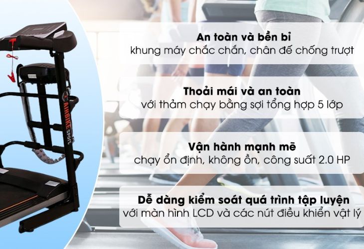 - Tốt cho người đau cơ: Bề mặt đệm của máy chạy bộ góp phần làm giảm tác động trong quá trình luyện tập. Máy phù hợp cho người bình thường hoặc các vận động viên trở lại sau chấn thương, hay đơn giản là ngăn ngừa tổn thương trong quá trình luyện tập.