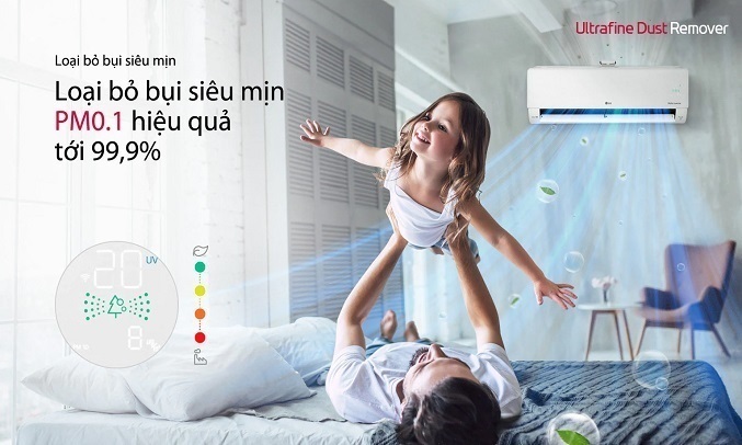 Máy lạnh LG Inverter 1.5 HP V13APFUV có công suất 1.5 HP thích hợp sử dụng cho phòng có diện tích từ 15 – 20 m2. Máy được trang bị công nghệ UV Nano sử dụng các tia UV, dễ dàng loại bỏ đến 99,9% vi khuẩn mang lại bầu không khí trong sạch. Bên cạnh đó, máy lạnh LG còn có chức năng tạo ion lọc không khí, giải phóng ra các ion âm để vô hiệu hóa sự hoạt động của vi khuẩn.
